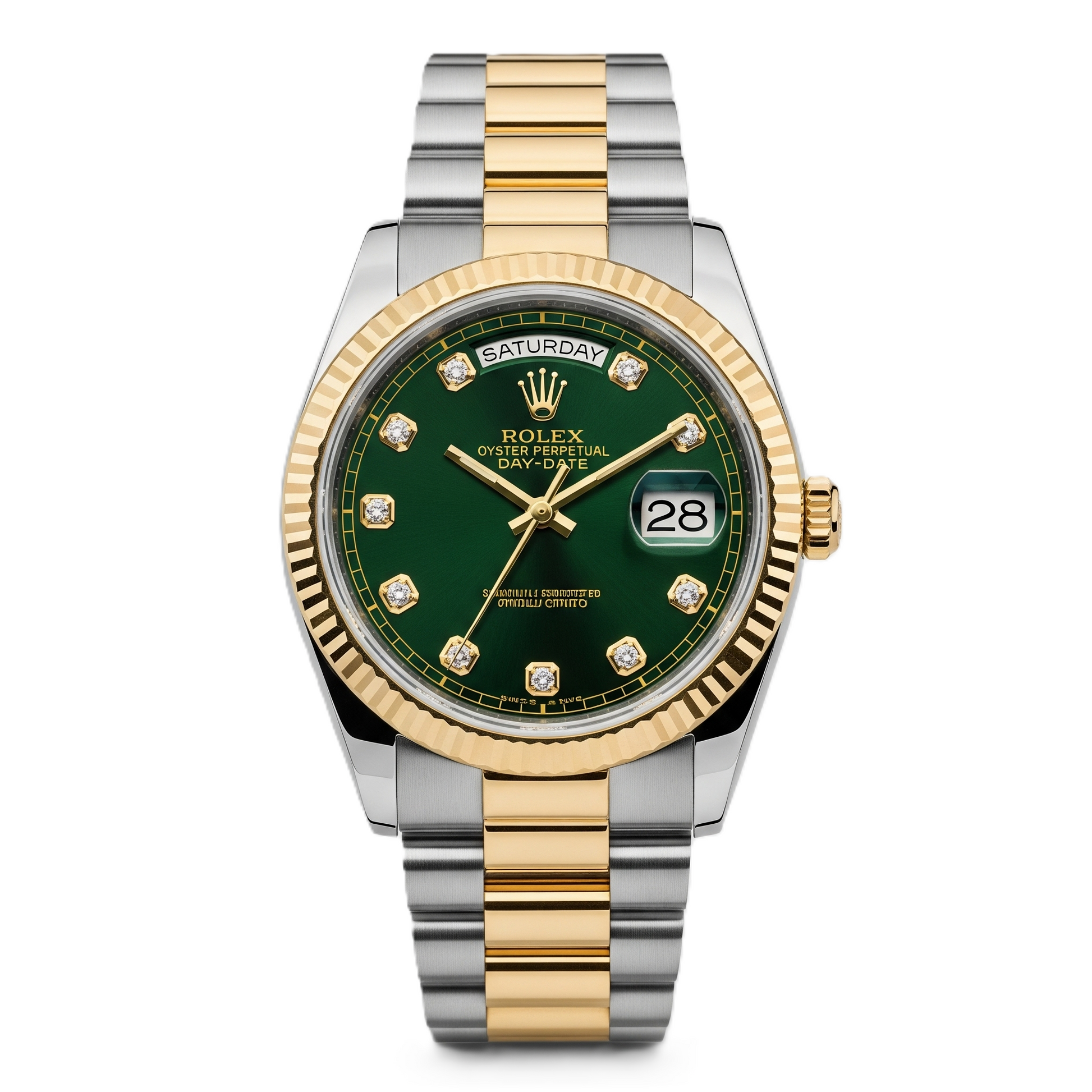 A symbol of timeless prestige β the Day-Date with the iconic Rolex green dial, blending heritage and luxury.